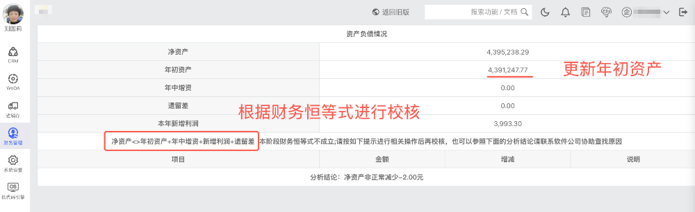 02、计算当前净资产,将其写入年初资产,用于进行财务校核的基础数据