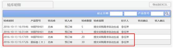 进行库存预留操作后会自动生成转库明细:该产品由总库转到预订库