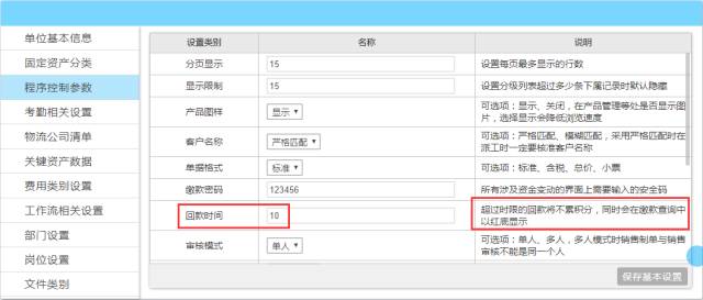 程序控制参数中的“回款时间”设置,将积分与回款时间挂钩。按时回款可增加相应积分,提高客户回款积极性。