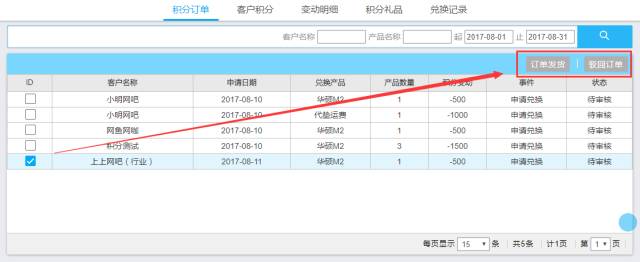 在“积分订单”处,可根据单据及货源情况进行发货或驳回操作。